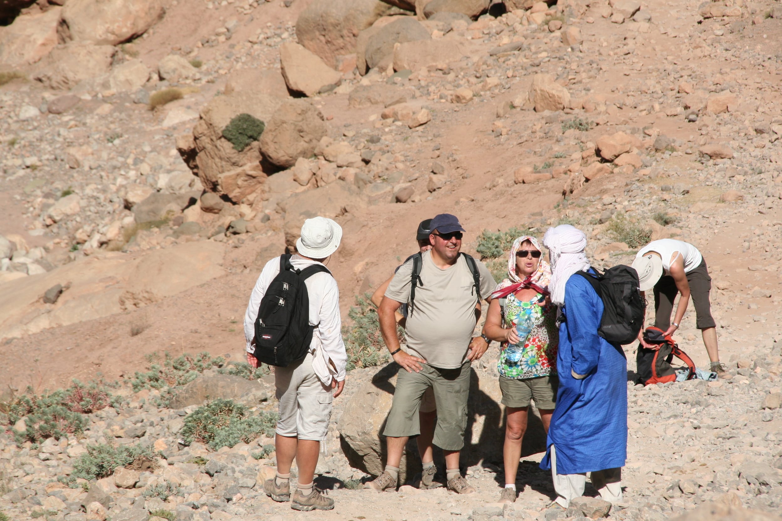 Le groupe poursuit son chemin par un plateau vallonné et cultivé d’orge et de blé vers le village d’ait TIZOUAD ; déjeuner. Toujours en traversant des plateaux arrivée au joli village en pierre niché à flanc de colline : Ait Tigga ; Montée vers le dernier village de la vallée Aît Ighmour. Petite montée de Tinalimt, superbes paysages .continuation vers notre campement au plateau de Maous.5h30 de Marche.