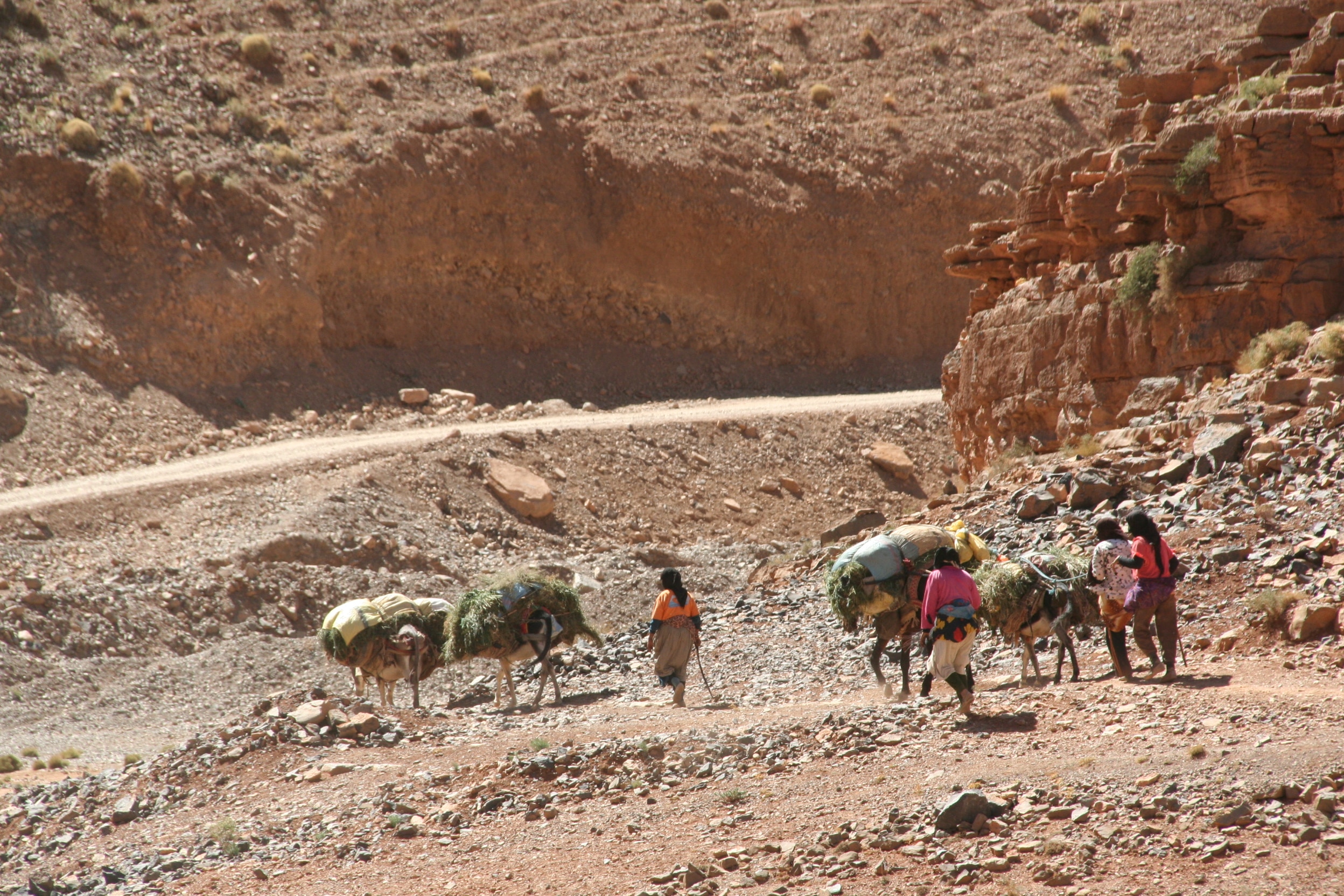 Départ vers 8h en direction de col Tichka, déjeuner au village de Tamlakout : Petite oasis nichée au coeur de la vallée. Après Rencontre avec l’équipe muletière, Départ de Tamlakout remontée de l’oued asséché, Nuit sous les tentes près du village de Tamazirt. 5h de route, 2h de marche.