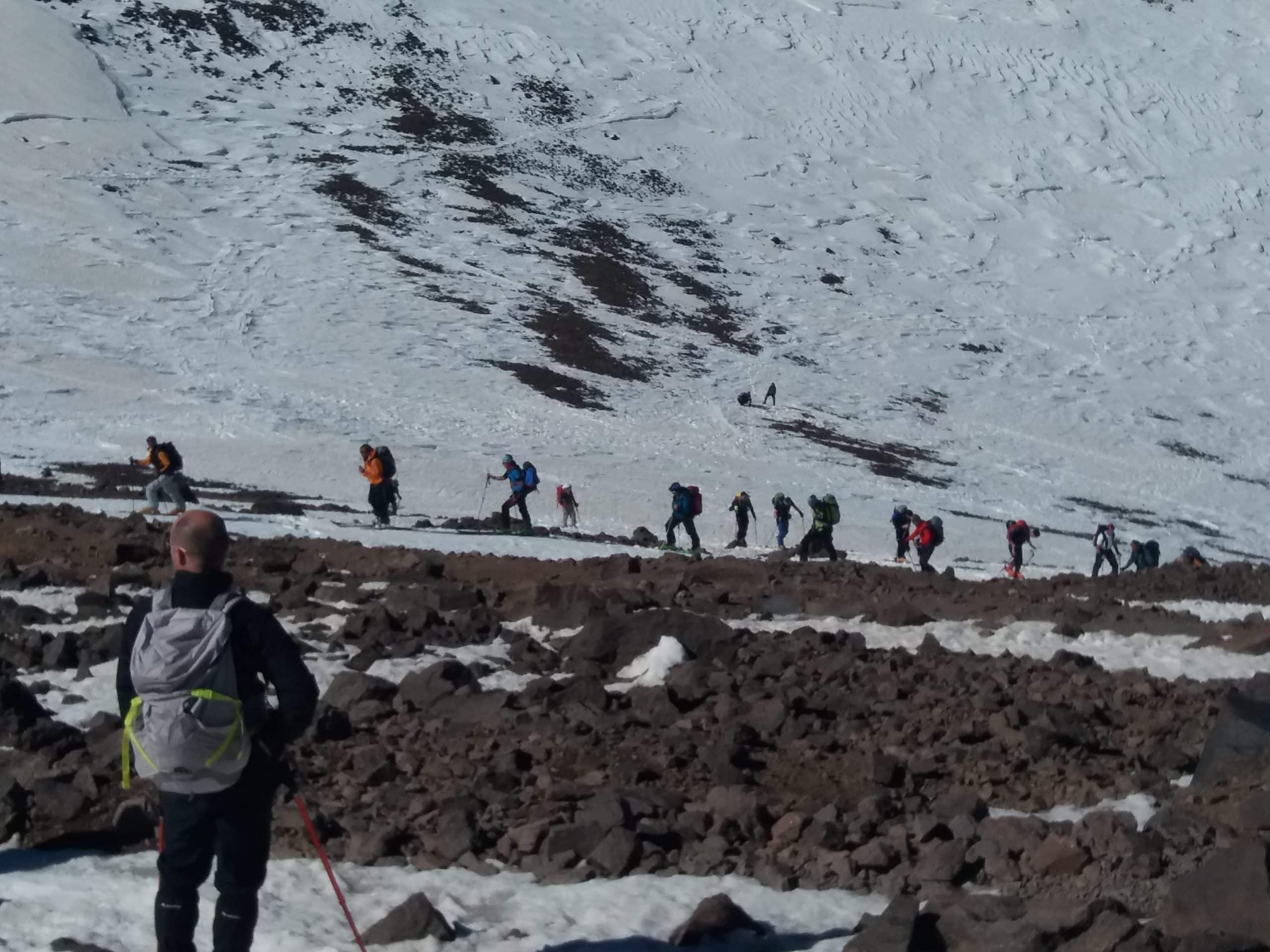 L’ascension sans aucune difficulté de sommet de Siroua (3305m). Notre cuisinier nous porte le pic nique, une montée pas assez longue ne nécessitent aucun moyen technique, Vue absolument splendide et spectaculaire sur la chaîne du Toubkal, le Saghro, le Djebel Bani. Puis la descente vers le bivouac Azib N’tizgui au bord de l’oued. Nuit sous les tentes. 6h de marche.